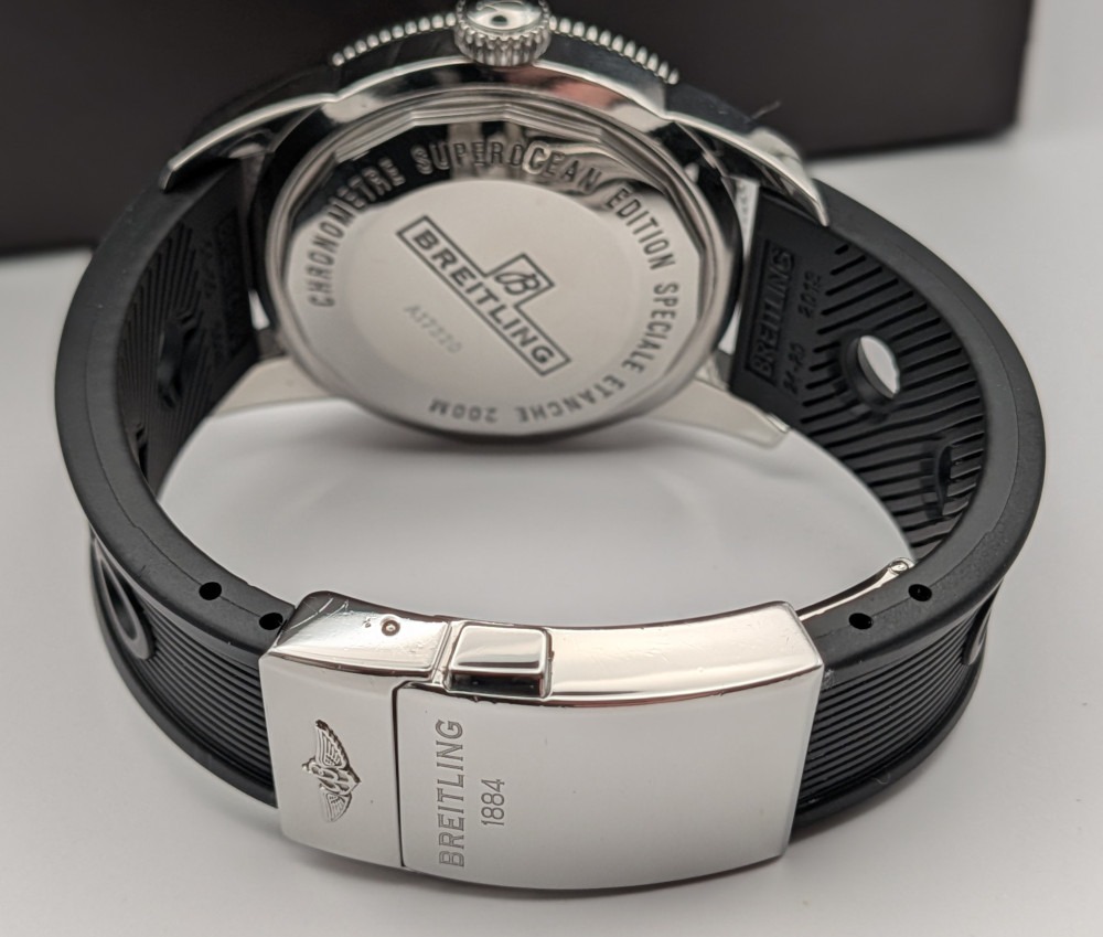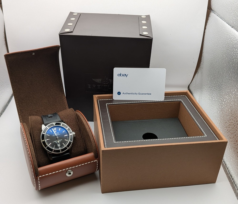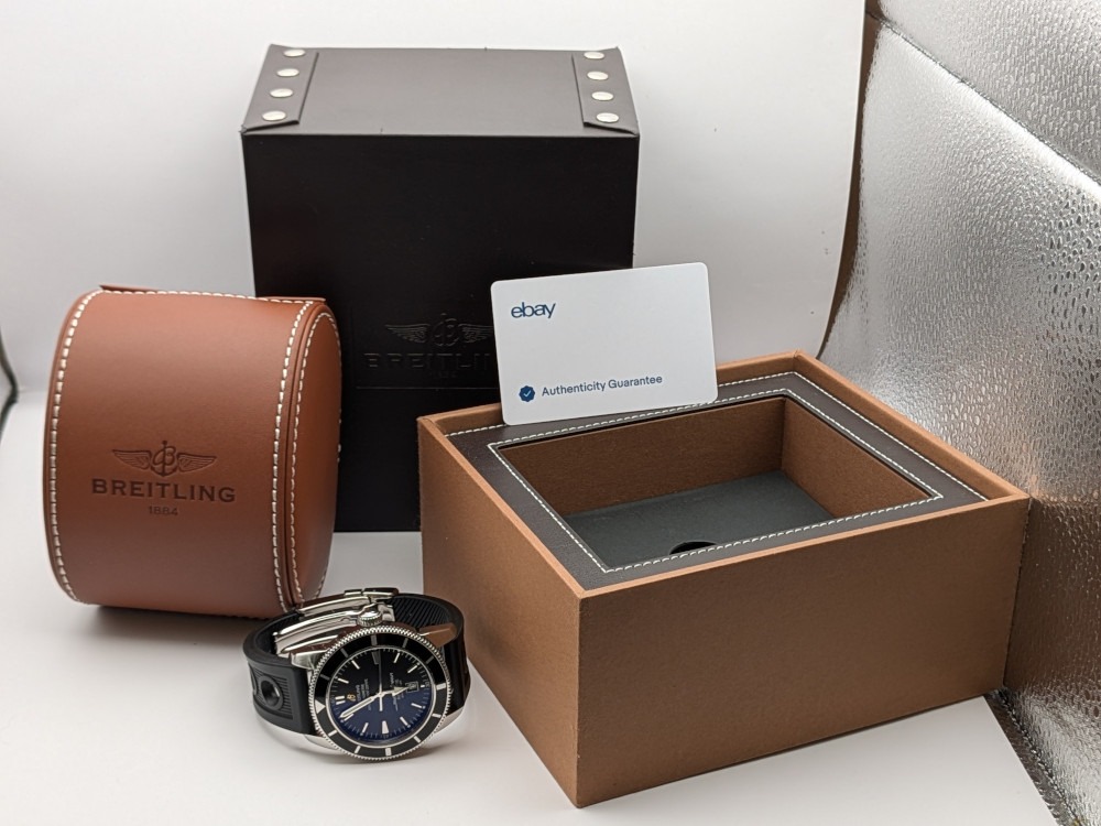 For sale is a stunning Breitling Superocean reference A17320. This pre-owned iconic timepiece is a perfect blend of style and performance, designed for those who demand excellence both underwater and on land. The watch comes with its original Breitling box and a genuine eBay Authenticity Guarantee card, giving you added peace of mind with your purchase. Please note that the original papers are not included. ### Product Features – Model: Breitling Superocean A17320 – Function: Automatic movement, date display, unidirectional rotating bezel, luminous hands and markers – Case Material: Stainless steel – Strap: High-quality rubber strap for durability and comfort – Box: Included – Papers: Not included – Additional: eBay Authenticity Guarantee card included ### Important Notes – All watches are sold as is. – No exchanges will be accepted. – Potential buyers are encouraged to carefully review all photos for the best understanding of the watch’s condition. This Breitling Superocean A17320 is an outstanding opportunity to own a luxury dive watch with classic Breitling design and reliability. Don’t miss your chance—contact for more information or to secure this piece today!