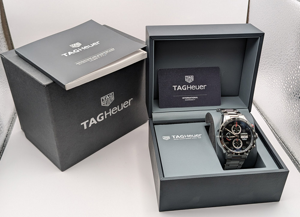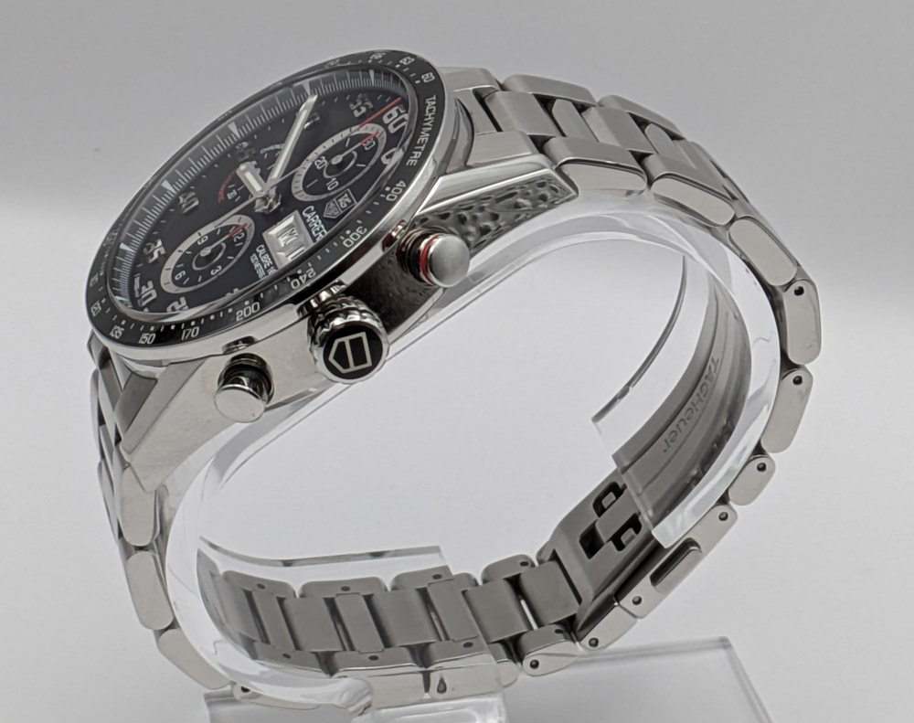 TAG Heuer Caliber 16 up for sale. This watch is a sophisticated timepiece that embodies precision and style, perfect for both casual and formal occasions. This pre-owned watch comes complete with its original box and papers, ensuring authenticity and collector value. Movement: Automatic Caliber 16 with a 42-hour power reserve. Design: Stainless steel case, chronograph functions, and a striking black dial. Water Resistance: Rated at 200 meters, suitable for swimming and diving. Condition: Gently used with minor signs of wear, maintaining excellent functionality. This watch is an exceptional choice for enthusiasts seeking a blend of luxury and performance. Its been well taken care of with just slight signs of wear as any time piece that has been used. Please look at the pics and video carefully for details.